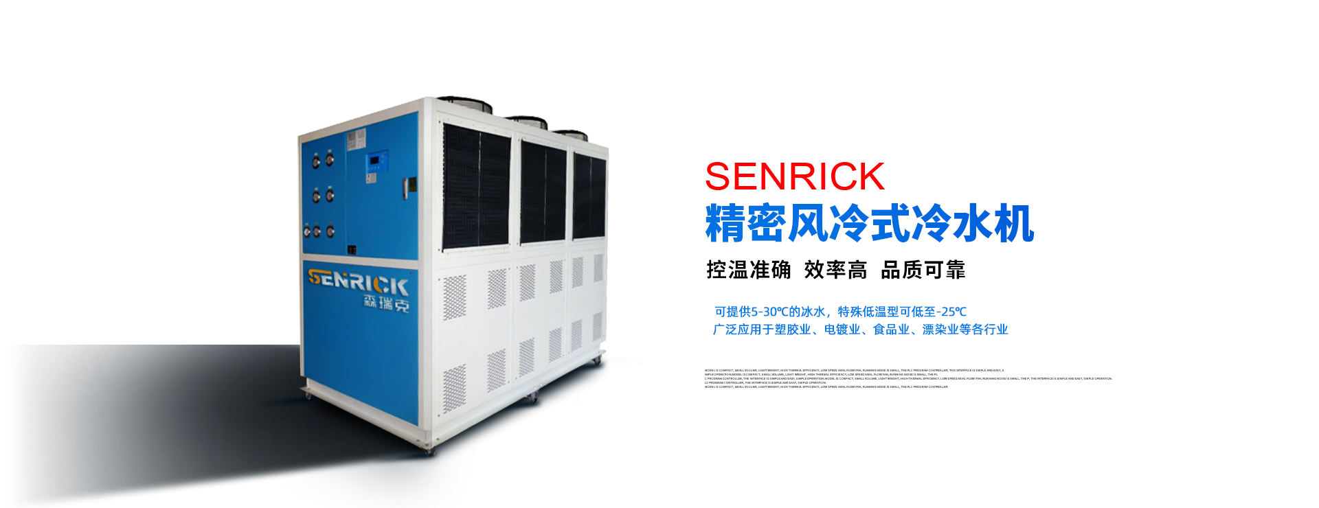 1.行業靠前——多項行業技術,造就低噪、節能、效率高的制冷系統,無懼嚴寒酷暑,無慮磨損腐蝕,維護便利。2.全mian智能——5英寸高清真彩觸摸屏,實現機組全mian動態監測。定時啟停,智能防凍,效率高節能,故障自我診斷,保養自動提示。3.精益求精——全不銹鋼水泵系統,遠離銹蝕之憂,著ming品牌配件,,細節精心處理,打造藝術品般的產品。